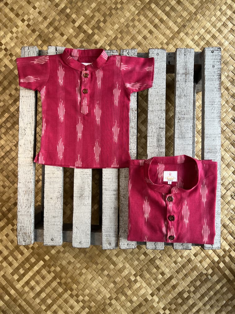 Some bonds don’t need words — just threads that match. Father & son in ikath short kurta by Aadai.
