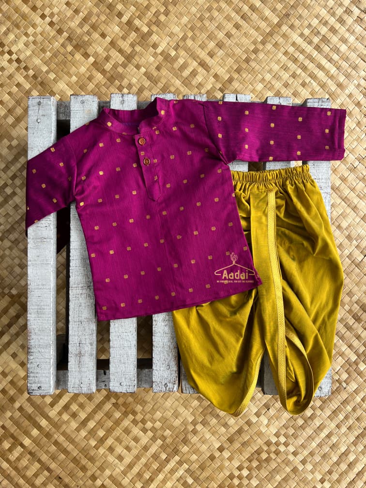 Rooted in heritage, refined in detail — a silhouette that carries innocence with royal grace. Aadai crafts long jippa & dhoti pants set ~ timeless grandeur for the little gentleman.