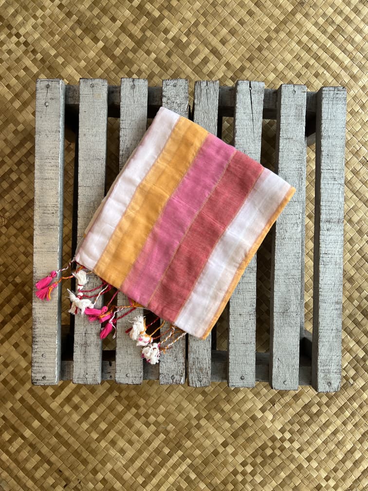 Breathable Rainbow Mulmul Cotton Saree with Pompoms!