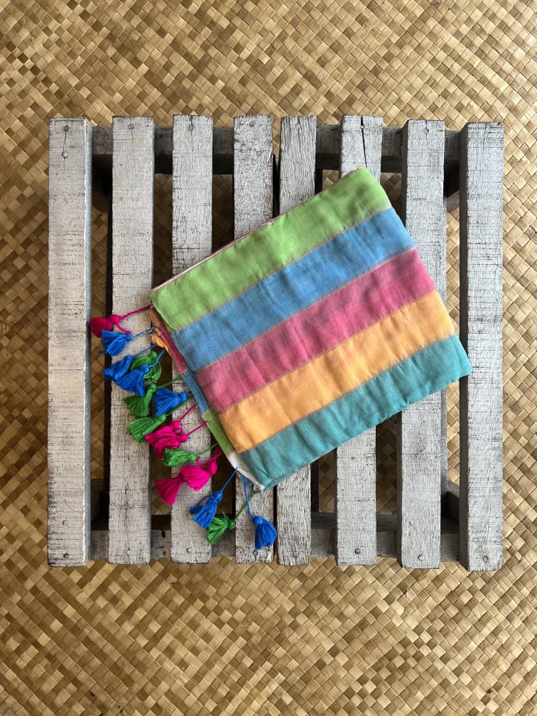 Breathable Rainbow Mulmul Cotton Saree with Pompoms!