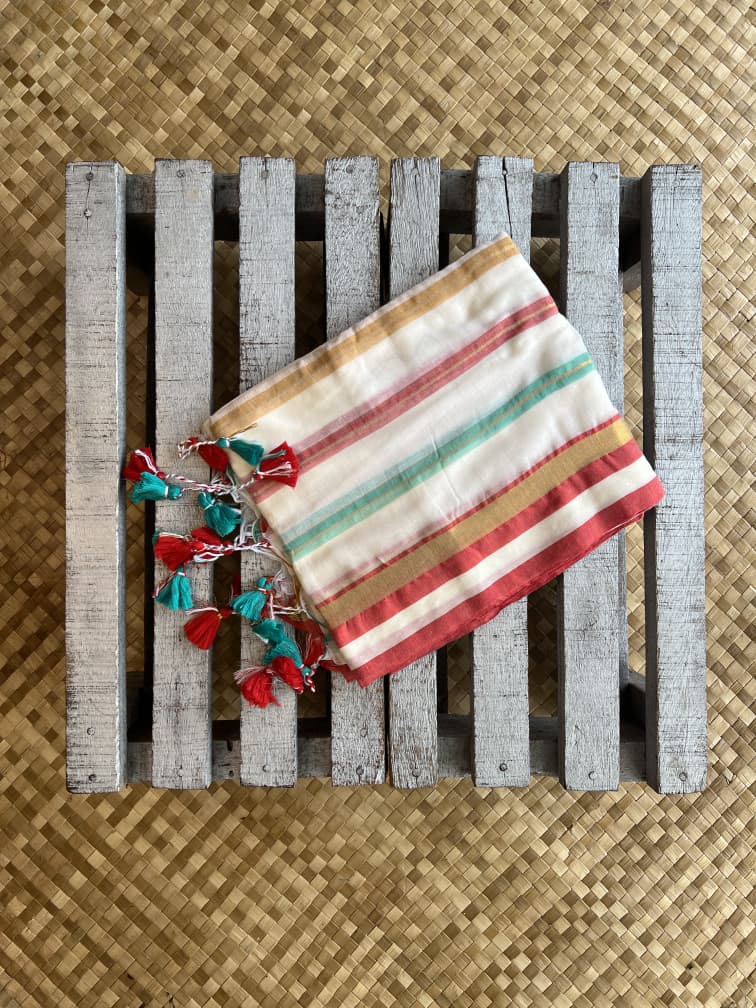 Breathable Rainbow Mulmul Cotton Saree with Pompoms!