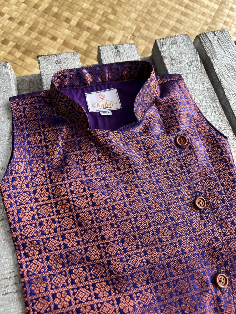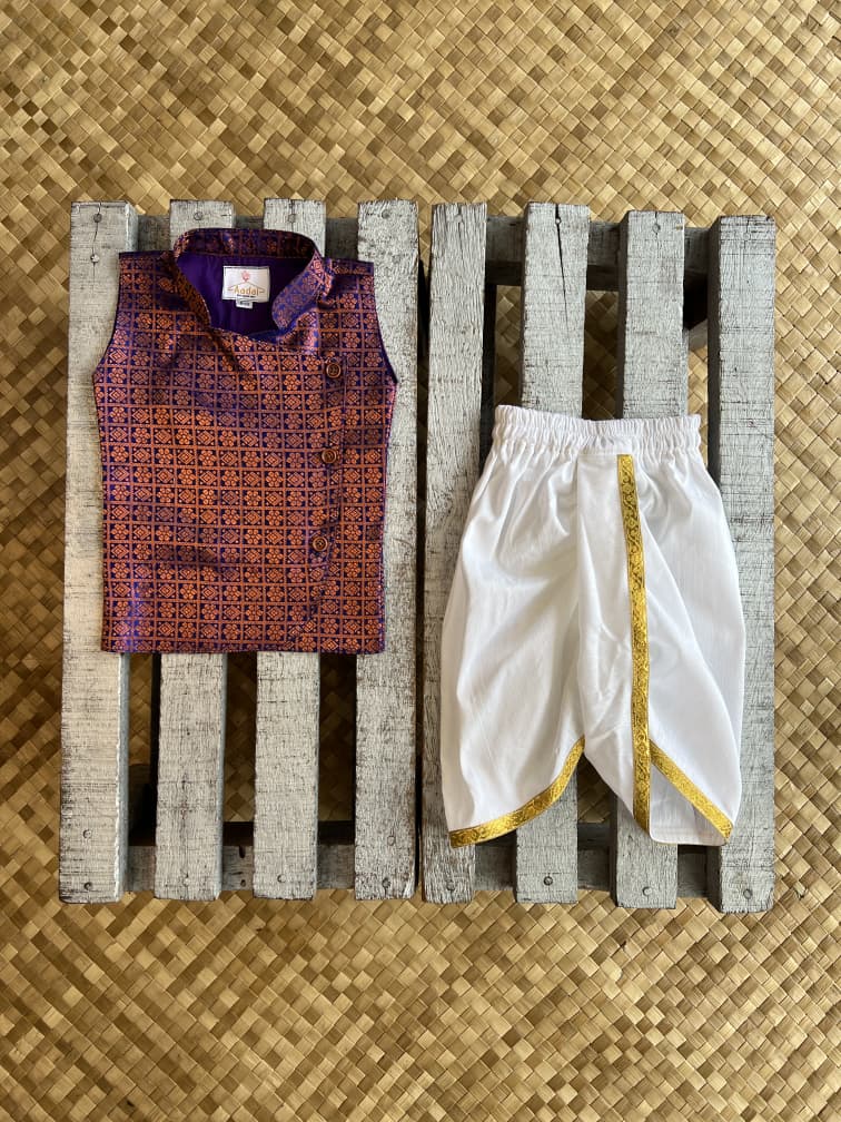 Regal by spirit, effortless by style — Aadai’s sleeveless brocade kurta and dhoti redefine modern majesty.