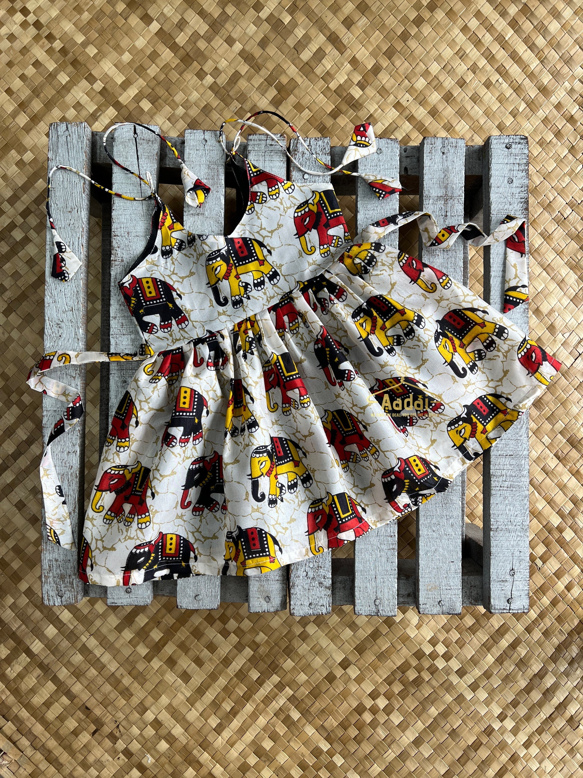 A touch of heritage, elephant printed dress on a silk. Suitable for traditional event or a casual outing