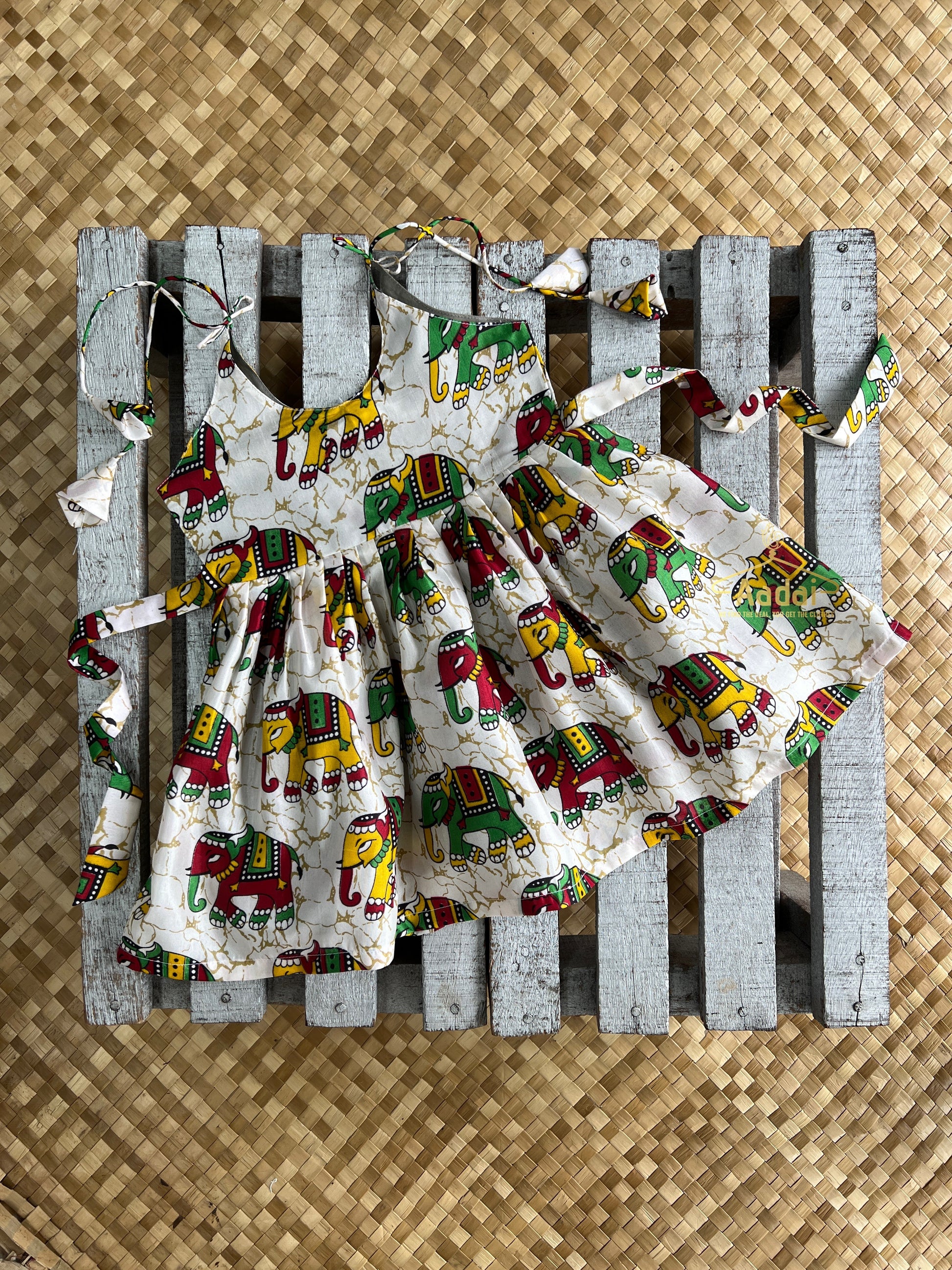 A touch of heritage, elephant printed dress on a silk. Suitable for traditional event or a casual outing